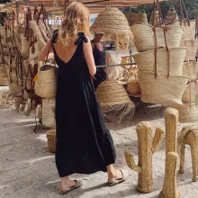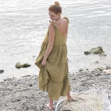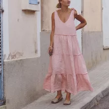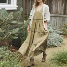 Crafted from a luxurious blend of 75% ramie and 25% cotton, the fabric feels natural, airy, and lightweight—perfect for keeping you cool when temperatures rise. The V-neckline elongates your neckline, while the natural waistline and flowy skirt create a flattering shape for all body types. Whether you’re dressing it up with wedges or keeping it casual with sandals, this maxi dress is your summer must-have.