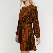 Add a touch of elegance to your wardrobe this autumn. Whether for work, a dinner date, or a weekend stroll, this velvet long-sleeved dress will quickly become a favorite. Elevate your style with the perfect blend of comfort and sophistication.