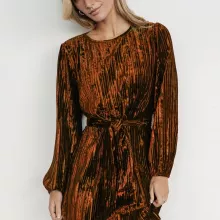 Add a touch of elegance to your wardrobe this autumn. Whether for work, a dinner date, or a weekend stroll, this velvet long-sleeved dress will quickly become a favorite. Elevate your style with the perfect blend of comfort and sophistication.