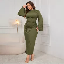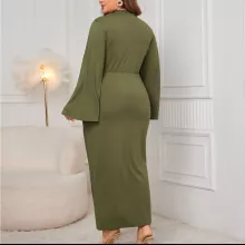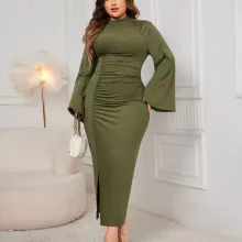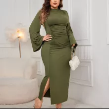 Elegant Women’s Plus Size Maxi Dress with High Collar and Hip Split