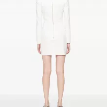 The crisp white hue radiates elegance, while the flattering low-cut V-neckline adds just the right touch of allure. Crafted with long sleeves and a refined zip fastening, it perfectly balances structure and softness. The premium fabric blend ensures a comfortable fit that hugs your shape in all the right places, without compromising on breathability or movement.