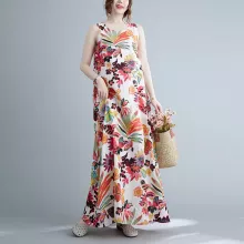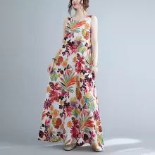 Step into a season of breezy style with our Floral Print Cotton Linen Long Dress. Perfectly blending vintage charm with modern comfort, this dress is your ideal companion for all your warm-weather adventures. Designed for women who cherish both style and comfort, this dress promises to keep you cool and stylish, no matter where the day takes you.