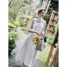 - Effortless Elegance: Elevate your style effortlessly with the timeless design of our French White Suspender Long Dress.