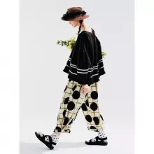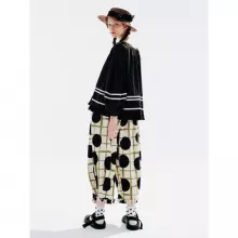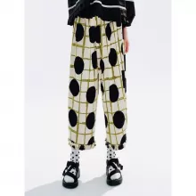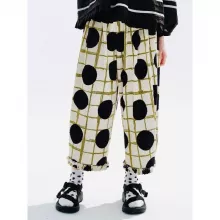 - Chic Design: Featuring a trendy green plaid pattern with playful black wave dots, these pants are an epitome of contemporary style.