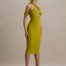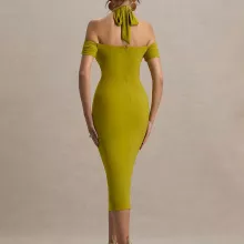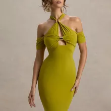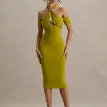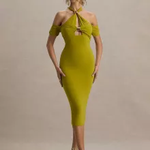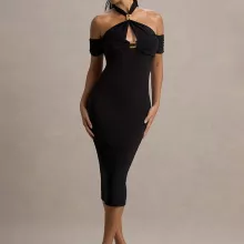 This halter backless midi dress is made for women who want to own the night. With its body-hugging fit and sultry design details, this dress is a statement of bold confidence and effortless style. The combination of a halter neckline, off-shoulder silhouette, and daring hollow-out detail creates a look that’s both seductive and sophisticated—perfect for any special evening out.