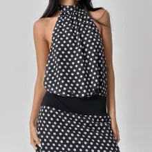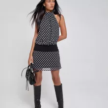 Get ready to steal the spotlight with this irresistible halter neck backless mini dress. Designed for bold, confident women, this dress is your go-to outfit for summer parties, date nights, or vacation evenings. With its playful polka dot print, sexy open-back design, and body-hugging silhouette, this dress blends charm and allure in just the right amount. Whether you’re heading to a beach club or a rooftop soirée, this dress will have all eyes on you.