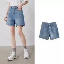 Whether you’re heading to the office on a hot summer day or enjoying a weekend brunch with friends, these denim shorts are your go-to choice. Their high waist and straight-leg profile make them exceptionally versatile for pairing with various tops and shoes, embodying a chic, effortless style.