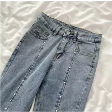 Introducing our latest addition that’s shaking up the fashion streets: The High Waist Flare Pearl Jeans. Designed for the modern woman who adores a blend of classic charm and trendy flair, these jeans are the ultimate wardrobe enhancer for every season. Whether it’s a crisp autumn day or a breezy summer evening, the versatility of these jeans will carry you through with ease and style. Crafted from premium cotton denim with just the right touch of spandex, they promise comfort without compromising on that sleek, fitted look.