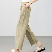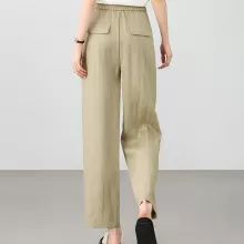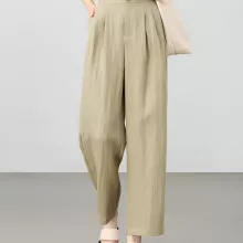 Designed with a high-rise elastic waistband and a loose, straight-leg fit, these pants enhance your silhouette while allowing for all-day comfort. The pleated front detail adds a refined touch, while practical side pockets bring both form and function to your wardrobe. Crafted from a premium blend of viscose, linen, polyester, and nylon, they offer durability without compromising on breathability — ideal for warmer weather.