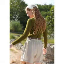 Our shorts boast a high-rise waist, secured with a stretchable elastic band for the perfect fit, complementing every figure. The solid color and minimalist design make them a versatile staple in any wardrobe. Crafted from 100% premium linen, these shorts are not only stylish but also highly breathable and durable. Practical side pockets add functionality, allowing you to carry your essentials effortlessly.