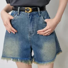 What sets these denim shorts apart is their vintage-inspired design combined with modern comfort. The high waist and wide-leg silhouette elongate your legs, while the stone-washed finish adds a touch of retro charm. Plus, the tassel detailing adds a playful twist to your look, making these shorts a standout piece in your summer wardrobe.