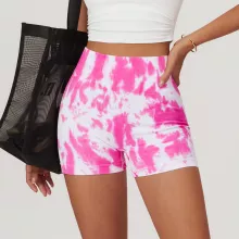 Made with a premium blend of 90% nylon and 10% spandex, these shorts offer a buttery-soft feel, exceptional stretch, and a sculpting high-rise waistband that flatters every curve. The vibrant tie-dye design adds a bold splash of personality to your workout gear, while the seamless construction ensures a chafe-free, second-skin fit.