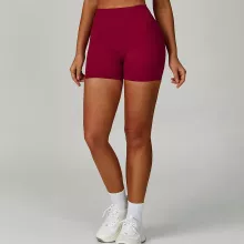 Made from a premium blend of 78% nylon and 22% spandex, the fabric feels soft against the skin while offering excellent stretch and moisture-wicking capabilities. The high waistband smooths your silhouette and stays in place, giving you the freedom to move without distractions. With a sleek, solid-color design available in black, wine red, brown, and sky blue, these shorts blend seamlessly into your workout or casual wardrobe.