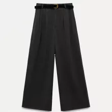 • Style: Straight-leg trousers with pleated details and a high-waisted fit, offering both a classic and flattering silhouette.