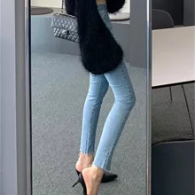 It’s not just the quality or the style; it’s the way these jeans make you feel. The blend of cotton and polyester ensures durability and a soft touch, while the medium stretch fabric allows for freedom of movement without losing shape. These aren’t just jeans; they’re a statement of your personal style, blending Korean fashion influences with the casual, timeless appeal of denim.