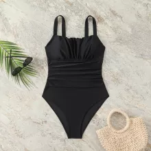 Crafted with a premium blend of 80% polyester and 20% spandex, it offers a smooth, stretchy fit that moves with you. Adjustable shoulder straps and a lightly padded bra give just the right lift, while the gathered design at the bust and metal decorative detail add a touch of elegance and subtle sex appeal. The quick-drying fabric ensures you stay cool and comfortable after every dip.