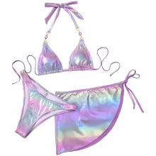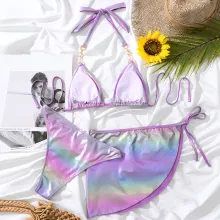 Get ready to shine with the Laser Leather Halter Bikini Suit – a show-stopping three-piece swimsuit that blends bold glamour with flattering support. Designed for women who love to make an entrance, this backless bikini set features a shiny leather look fabric trimmed with rhinestones, and pleated push-up cups that enhance your curves in all the right ways. Whether you’re hitting the beach, lounging poolside, or turning up the heat at a summer party, this sexy, strappy swimwear ensures all eyes are on you.