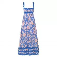 This stunning dress features delicate spaghetti straps and a graceful slash neckline that highlights the shoulders and creates a flattering silhouette. Made from a soft cotton blend with a touch of stretch, it offers both comfort and a perfect fit. The flounced edge adds a playful, yet refined touch to this beautiful piece.