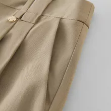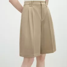Crafted from a premium blend of polyester, viscose, wool, and spandex, these Bermuda shorts deliver a crisp appearance with a lightweight feel. The high waist flatters your shape while pleated front detailing adds a touch of elegance. The fabric has a structured drape without any stretch, giving you a sharp, defined profile ideal for office settings or chic streetwear. Whether paired with a tucked-in blouse or a simple tee, these shorts strike the perfect balance between form and function.