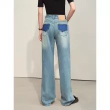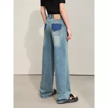 Our jeans feature a unique combination of classic and modern elements. The vintage-inspired wide-leg cut is complemented by stylish leather plate decorations, giving you a distinctive look that’s both retro and fresh. The mid-rise waist ensures a comfortable fit, while the zipper fly closure adds convenience and ease of wear.