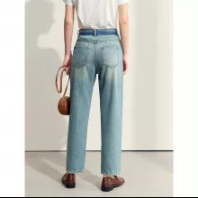 With a focus on detail and quality, these jeans feature intricate patchwork, a stylish washed finish, and unique decorations including buttons, pockets, and fake zippers. The mid-waist design and straight-cut style provide a timeless silhouette, perfect for any casual occasion. Whether you’re heading out for a casual day with friends or a relaxed evening out, these jeans will be your go-to choice.