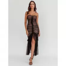 Don’t settle for ordinary. The Mozision Strapless Mesh Lace Bodycon Dress is for the woman who’s not afraid to take center stage. Its sultry design, elegant fit, and high-fashion detailing will make you the talk of the party. Perfect for a club night, party, or special event, this dress was made to highlight your confidence and style.