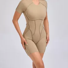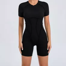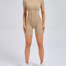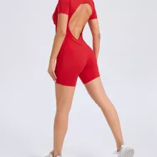 This workout jumpsuit is made from a blend of high-quality nylon and spandex, offering the perfect balance of softness, flexibility, and durability. The short sleeves provide just the right amount of coverage while keeping you cool, and the one-piece design ensures a smooth, flattering silhouette with no fuss or ride-up. It fits true to size, so you can order with confidence.
