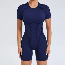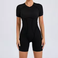 This workout jumpsuit is made from a blend of high-quality nylon and spandex, offering the perfect balance of softness, flexibility, and durability. The short sleeves provide just the right amount of coverage while keeping you cool, and the one-piece design ensures a smooth, flattering silhouette with no fuss or ride-up. It fits true to size, so you can order with confidence.