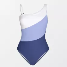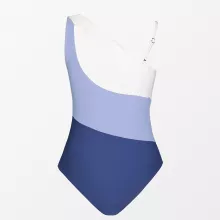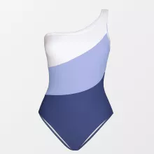 One-Shoulder Colorblock Monokini Swimsuit for Women – Purple White Blue