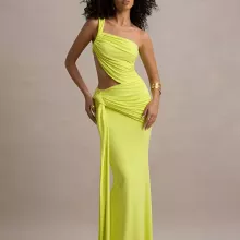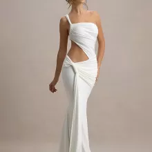 Step into the spotlight and command attention with this stunning One Shoulder Ruched Cutout Maxi Dress. Designed to make a bold and unforgettable impression, this floor-length gown is your go-to outfit for high-energy nights out, glamorous parties, upscale clubs, or that special occasion where all eyes deserve to be on you. With its sleek silhouette and sultry cutout design, it sculpts and enhances your natural curves in all the right places.