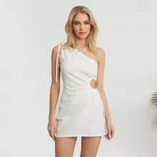 Embrace the allure of simplicity and sophistication with our One Shoulder Mini Dress, tailored perfectly for those summer evenings and vibrant streetwear occasions. This sleek and sexy dress is designed to flatter your figure and accentuate your curves, making it a stunning choice for any party or club event.