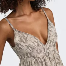 This Only strappy dress combines effortless elegance with all-day comfort. The soft polyester fabric feels great on your skin, and its breathability ensures you stay cool in the warmer months. The v-neckline adds sophistication while keeping the look playful, and the straps offer a feminine, light design perfect for any casual or semi-formal outing. Its versatile beige color makes it a wardrobe staple, ideal for a wide range of accessories or layering options.