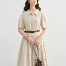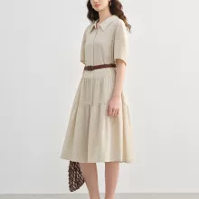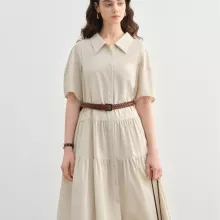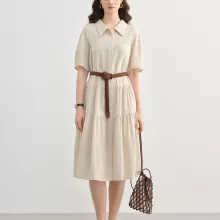 This mid-calf shirt dress combines everyday practicality with timeless design. Crafted from a breathable cotton, linen, and Lyocell blend, it offers a light and airy feel perfect for spring and summer. The fabric’s natural composition ensures it’s gentle on the skin, while the structured polo neckline and pullover style make dressing effortless. Short sleeves and a classic lapel add a tailored touch, keeping your look polished yet comfortable all day long.