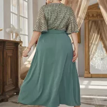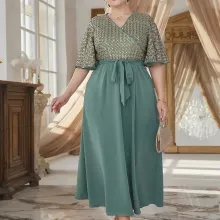 This Plus Size V-Neck Dress is more than just a garment—it’s a statement of elegance and comfort. Its carefully crafted details, from the ruffle sleeves to the floor-length design, make it perfect for any occasion where you want to look and feel your best. Whether it’s a formal banquet or a spring soirée, this dress ensures you’ll shine effortlessly.