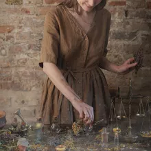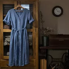 Crafted from a breathable cotton-linen blend, the fabric feels light and cool against your skin, even on the hottest days. The A-line silhouette and empire waist create a graceful shape that skims the body without clinging, offering a flattering fit for all body types. The V-neckline adds a touch of femininity, while the short regular sleeves and button-up front bring classic, vintage-inspired vibes to your wardrobe.