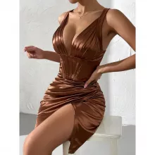 Elevate your evening look with our Ruffle V-Neck Evening Party Dress. This stunning dress is designed to turn heads with its ruffled detailing, deep V-neckline, and sleek silhouette. Perfect for summer soirées and club nights, this dress exudes confidence and allure, making you the star of the show wherever you go.