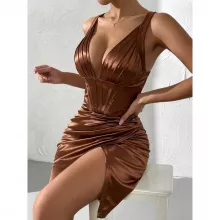 Indulge in the allure of our Ruffle V-Neck Evening Party Dress and make a lasting impression at your next event. With its stylish design and flattering silhouette, this dress is sure to become a staple in your wardrobe. Elevate your evening look and exude confidence and glamour with our irresistible party dress.