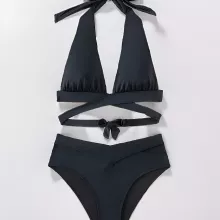 This swimsuit was made for moments in the sun. Whether you’re sipping cocktails at a beach resort, soaking in the hot springs, or snapping vacation selfies on a cruise deck, the Sexy Black Halter Cross Bikini brings effortless glamor to every setting. It’s equally perfect for summer getaways, romantic get-togethers, and fashion-forward poolside lounging.
