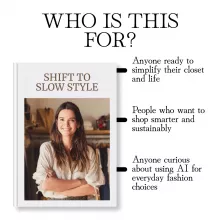 Your journey to a sustainable, mindful wardrobe starts here. Download Shift to Slow Style today and discover how small shifts can lead to a big transformation in how you shop, dress, and live. Start embracing slow fashion with clarity, confidence, and ease.