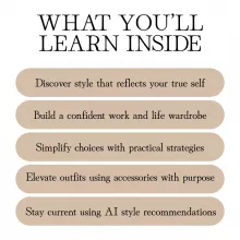 • Clarity & Confidence: Learn how to find your signature style for work and life without overwhelm.