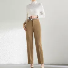 Crafted from a premium blend of polyester and viscose, these pants are lightweight yet warm, making them ideal for cooler months. The fabric’s slight stretch ensures a comfortable, all-day fit, while the sleek design keeps you looking sharp from morning meetings to evening events. The flat front and high-waist design combine style and practicality, giving you a confident, put-together appearance effortlessly.