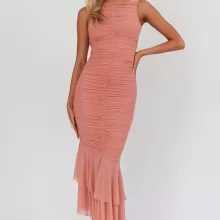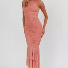 Designed to dazzle, this sleeveless backless ruched maxi dress is your new go-to for unforgettable nights. Crafted for bold confidence and effortless allure, this ankle-length stunner features a flattering slim fit that hugs your curves in all the right places. With a double-layered knit fabric, soft stretch, and a sultry ruffle hem, this dress redefines what it means to feel sexy and elegant at the same time.