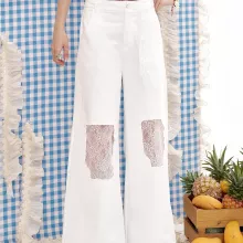 Whether you’re lounging by the pool or strolling through the city streets, these pants are versatile enough for any occasion. The lace patchwork adds just the right amount of charm, making them the perfect choice for those who love a subtle yet fashionable statement. Add a light top and some sandals, and you’re ready to go!