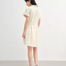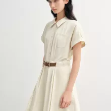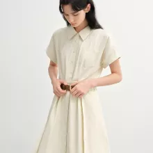 Meet your new summer wardrobe essential – this breathable linen-blend shirt dress combines polished tailoring with all-day comfort. The empire waist accentuates your smallest point while the A-line silhouette gracefully skims your curves. With its classic collar and midi length, this dress transitions seamlessly from brunch dates to office days with just a change of accessories.