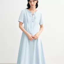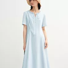 The lace-up detail at the waist adds a subtle accent, giving you the freedom to shape the fit just the way you like. With a timeless O-neckline and short sleeves, this dress easily transitions from morning meetings to evening strolls. Whether you’re heading to the office, catching up with friends, or simply enjoying a sunny day, this dress is your go-to for effortless beauty.