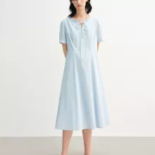 The lace-up detail at the waist adds a subtle accent, giving you the freedom to shape the fit just the way you like. With a timeless O-neckline and short sleeves, this dress easily transitions from morning meetings to evening strolls. Whether you’re heading to the office, catching up with friends, or simply enjoying a sunny day, this dress is your go-to for effortless beauty.