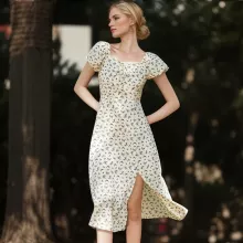 - Sleeve Style: Puff sleeves add a touch of vintage glamour.