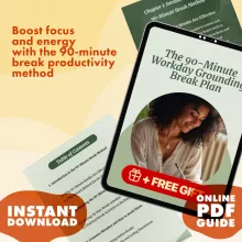 It’s time to stop powering through exhaustion and start working smarter. Whether you’re remote, in the office, or studying, this digital guide gives you the structure and flexibility to create a sustainable workflow. Download The 90-Minute Workday Grounding Break Plan today and unlock the balance of productivity and well-being you’ve been searching for.