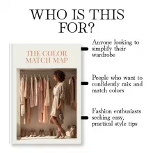This guide is perfect for anyone who wants to improve their color coordination skills. Whether you’re an everyday shopper looking to elevate your personal style or a fashionista aiming for a more polished, put-together wardrobe, The Color Match Map will simplify your outfit choices and leave you looking fabulous. It’s great for individuals who want to learn how to mix and match colors without feeling overwhelmed by the options.