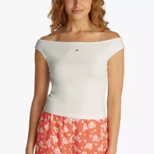 Make every warm day feel like a breeze in the BreezyFit White Boat Neck Top by Tommy Hilfiger Jeans. Designed with simplicity and elegance in mind, this flattering women’s top is your new go-to for everything from brunch dates to park strolls. Crafted to elevate your casual wardrobe, it combines breathable comfort with timeless style—perfect for Spring and Summer.